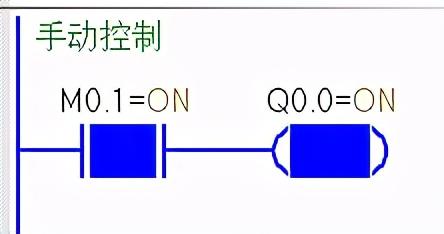 如下图,在Q0.0=1的情况下,断开M1.0闭点,转到自动控制方式时,Q0.0还保持为1.,这种情况在实际应用中要注意。