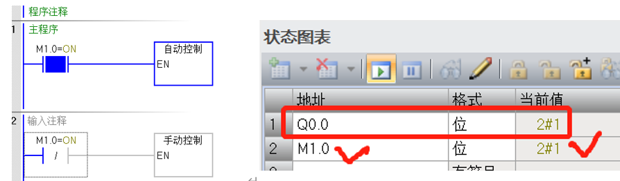 M1.0=1时,手动程序中的Q0.0还保持为1