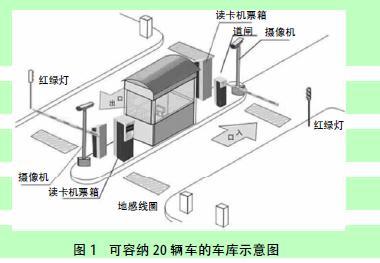 如图1 所示, 以可容纳20 辆车的车库为例,设计一个管理系统。一个入口,一个出口。以固定用户为主,少量临时性散户。入口无人职守,使用闭路电视监控,用可视对讲器与收费亭联系。出口实行人工半自动收费管理。通过对楼内地下车库东、西向两个通道口实行控制,科学管理进出车辆,完成车库交通的自动调度,保护了车辆安全,提高了地下车库使用效率,为车主营造了一个安全、舒适、便捷、优质服务的停车环境。