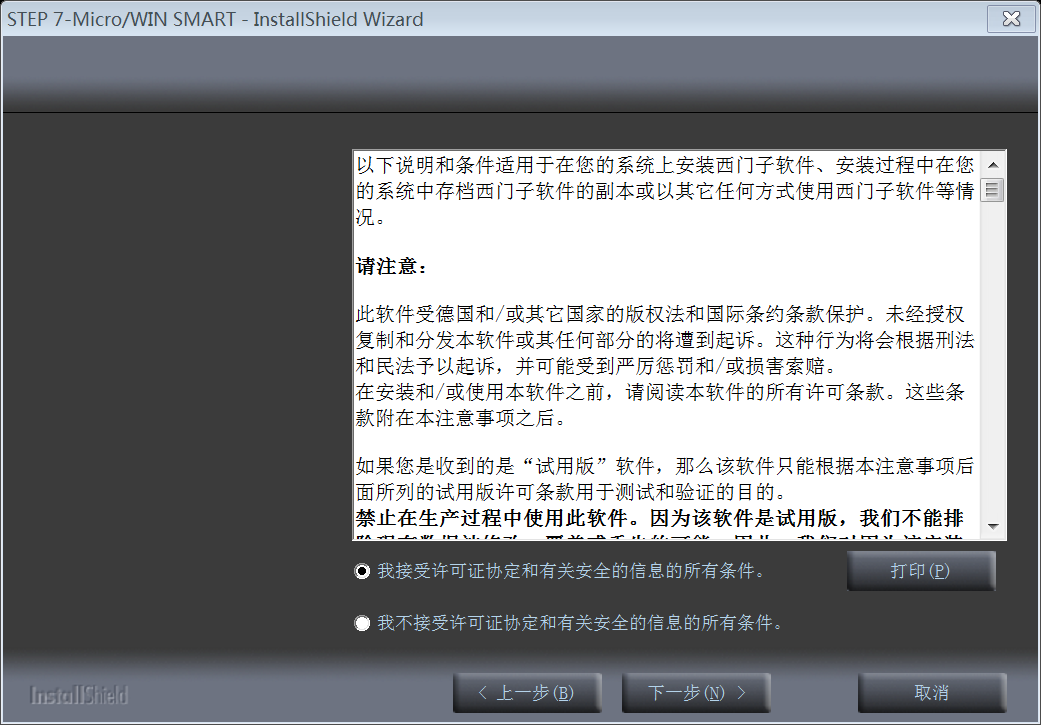 7. 弹出对话框:选择我接受许可证协定和有关安全的信息的所有条件。