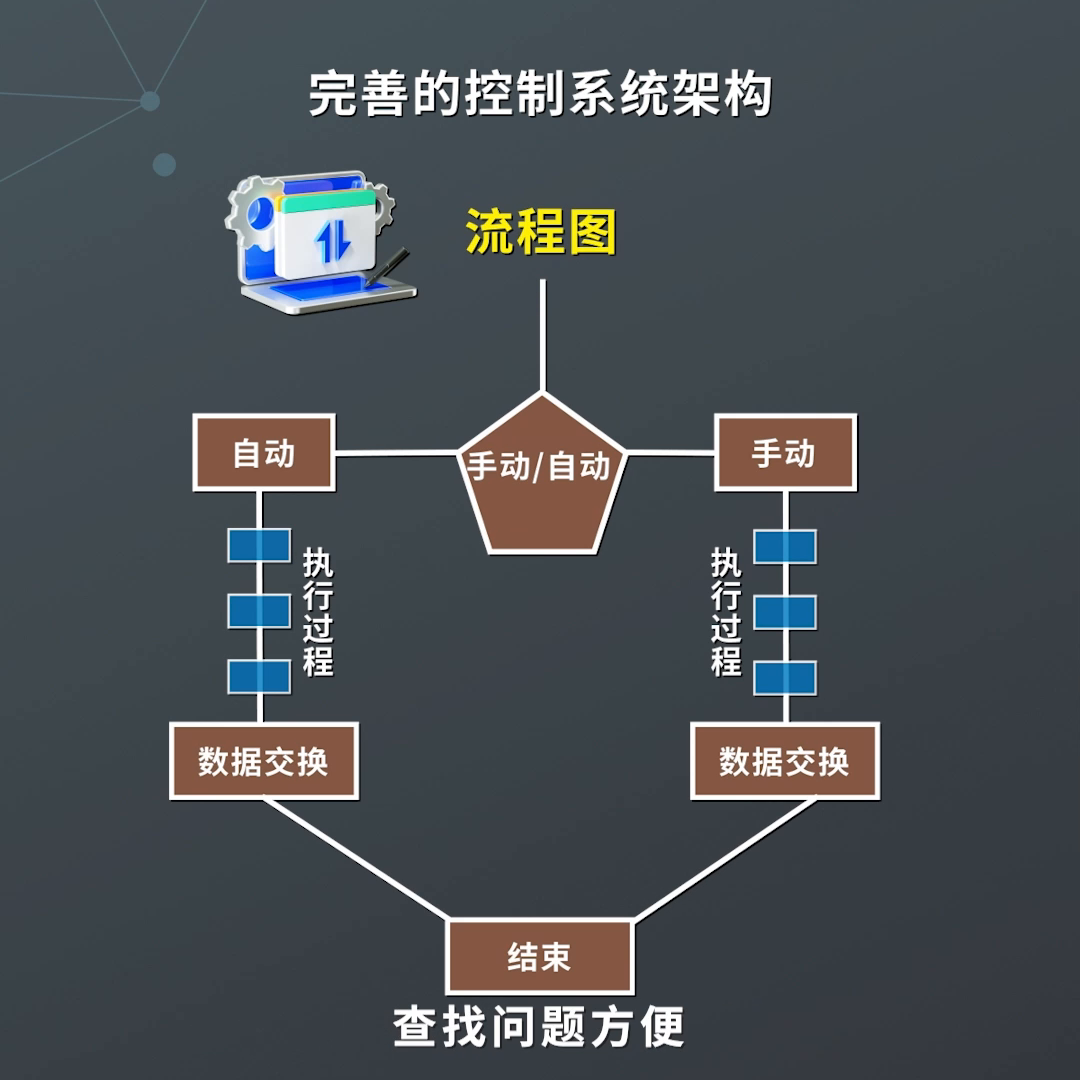 会PLC指令不等于你会做自动化项目。一个控制系统涉及到的可能有手自动控制、定位控制以及数据采集等。有没有发现你掌握了很多PLC应用指令,但是要去做项目时才发现没有思路。其主要原因就是没有一个完善的控制系统架构。