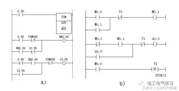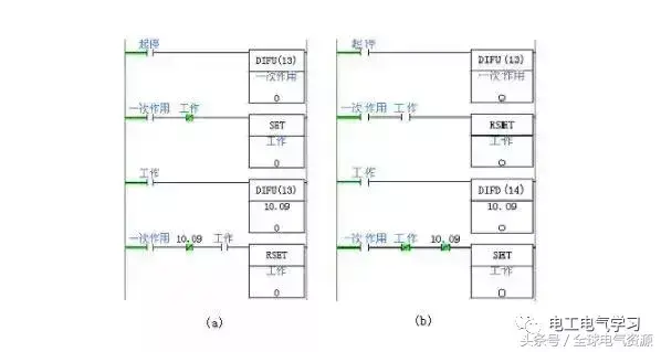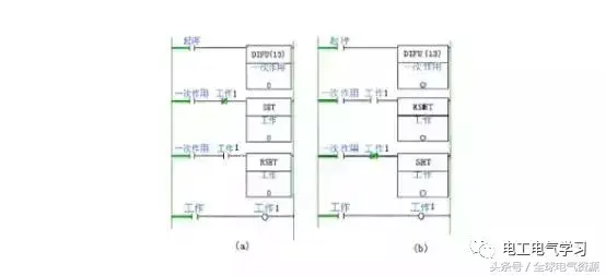 a – OMRON PLC程序;b – 三菱work2 软件PLC 程序