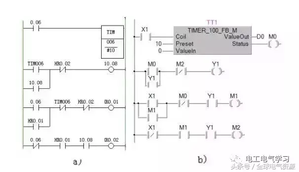 a)OMRON PLC; b)三菱PLC;