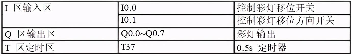 六、8个彩灯移位控制用IO导线控制接在Q0.0到Q0.7上的八个彩灯循环移位,用t37定时,每0.5S移位一位,首次扫描时给Q0.0到Q0.7置初值,让Q0.0和Q0.2先有输出。用I0.1来控制彩灯位移的方向。