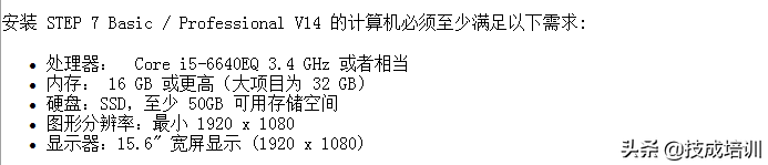 PLC编程软件小则几百兆,多则十来个GB,尤其是西门子博途软件,安装西门子博图软件非常的忙,需要安装先装STEP,安装好后再安装WINCC,最后需要安装专属此博途版本的仿真软件PLSIM,再接下来还需要安装STAETER,最后还需要授权,这样一串下来,不说手机了,就是电脑也并不一样带的动,安装博途软件的电脑都是有要求,安装内存需要大于8GB,具体的要求你可以参考下图: