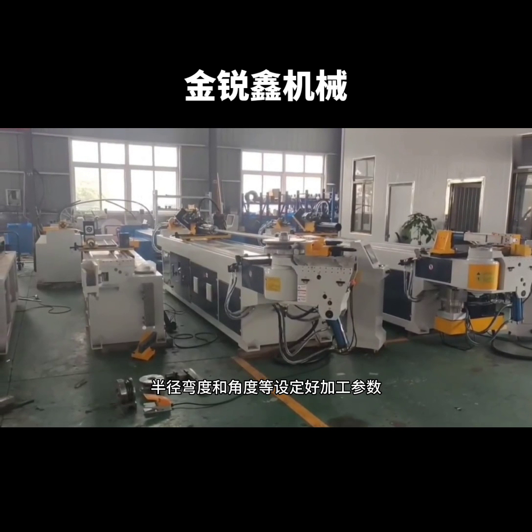 金锐鑫机械。全自动弯管机采用PLC可编程,控制器控制,可根据管子的材料,半径弯度和角度等设定好加工参数。