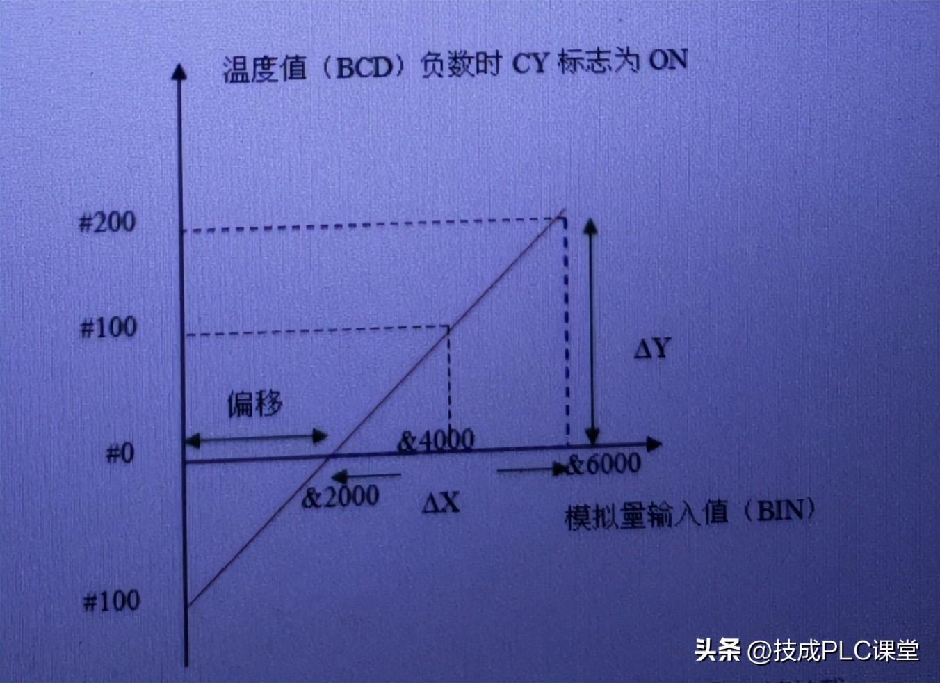 如例: 来自欧姆龙模拟量模块输入单元获取外部数据为0-6000(BIN),对应到的温度表-100-200,这时候我们就要运用到缩放SCL2指令。