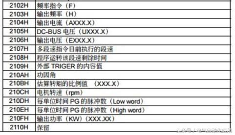 根据下图台达变频器通讯协议的参数,向台达变频器2000h地址写数据01(XX000001)时停止运行,写12H(XX010010)是正转,写22H (XX100010)是反转。