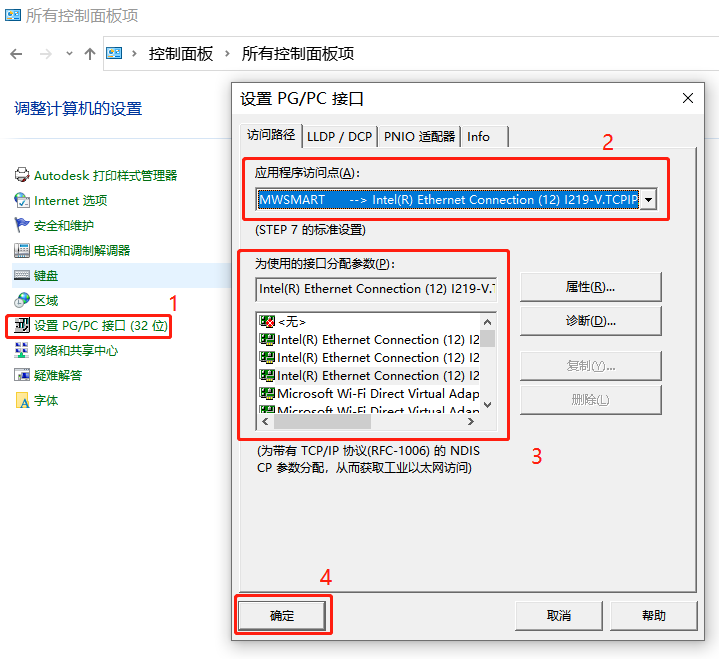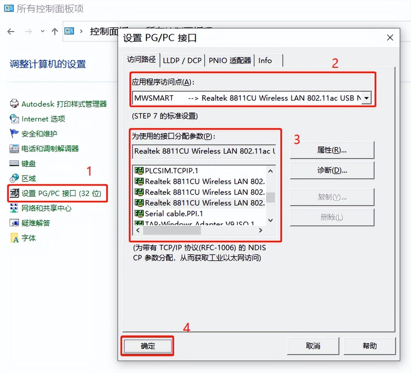这一步非常的重要,如果你的电脑的PGPC访问接口设置不对也会导致你的软件连接不上PLC。