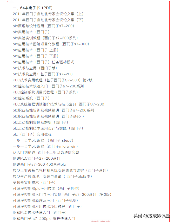 没别的,小编为你准备了,西门子PLC电子书共计64本。这份资料,可以说是市面上整理最齐全的了。并且可以根据自己的技能水平,选择性的学习,一步步提高。