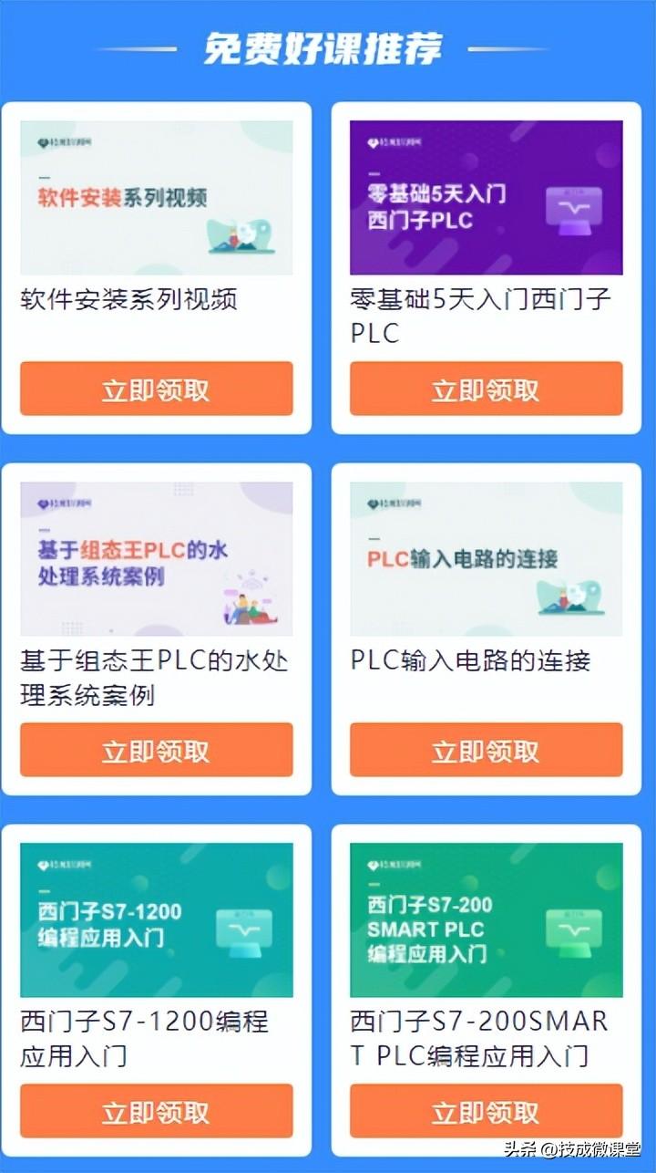 更为大家准备了几门经典的西门子PLC视频课程:软件安装视频案列课程、零基础5天入门西门子PLC、组态王水处理、PLC输入电路、西门子1200PLC编程应用等,助力大家技术更上一层!