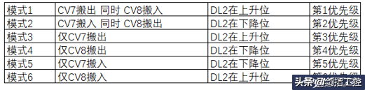 先以初始状态、单动作模式来分析下DL2的主要动作模式:托盘从CV7搬出至CV9(简称CV7搬出)、托盘从CV6搬出至CV7(简称CV7搬入)、托盘从CV8搬出至CV24(简称CV8搬出)、托盘从CV23搬出至CV8(简称CV8搬入);