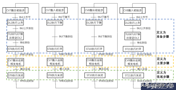 DL2上升/下降、ST打开/关闭等都是准备/收尾步骤,最主要的步骤是运转电机进行搬入/搬出。我们以主要步骤来定义6种动作模式