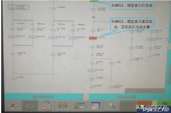 以主要分支3为例,SFC执行到SUB021(CV7搬出子SFC)时,由于报警等原因,DL2退出自动运转。
