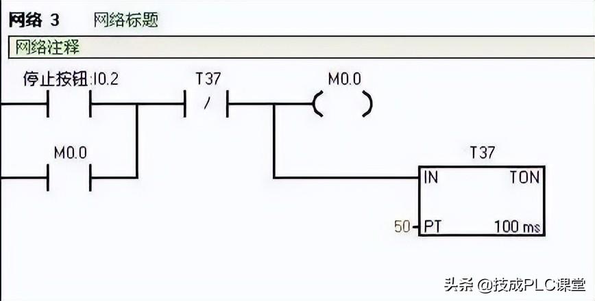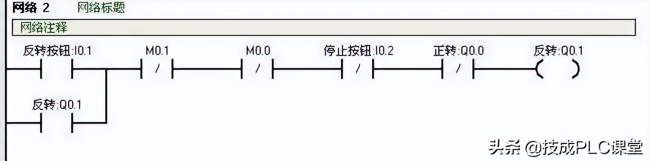 题意(2) 要求按停止按钮5秒后才能改变电机方向,所以这里需设置一个标志位,这里用M0.0。
