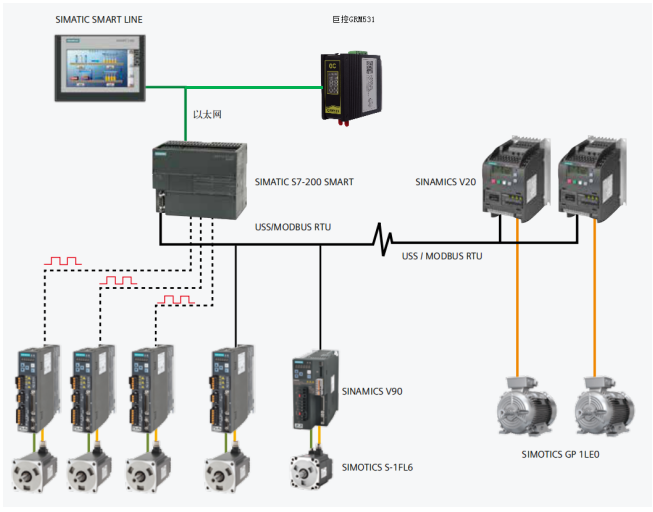 • 支持 Modbus RTU、USS、PROFIBUS-DP、自由口通信等
