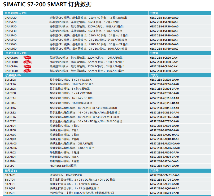 S7-200 SMART分为2中,SR/ST常用型,,CR经济型。