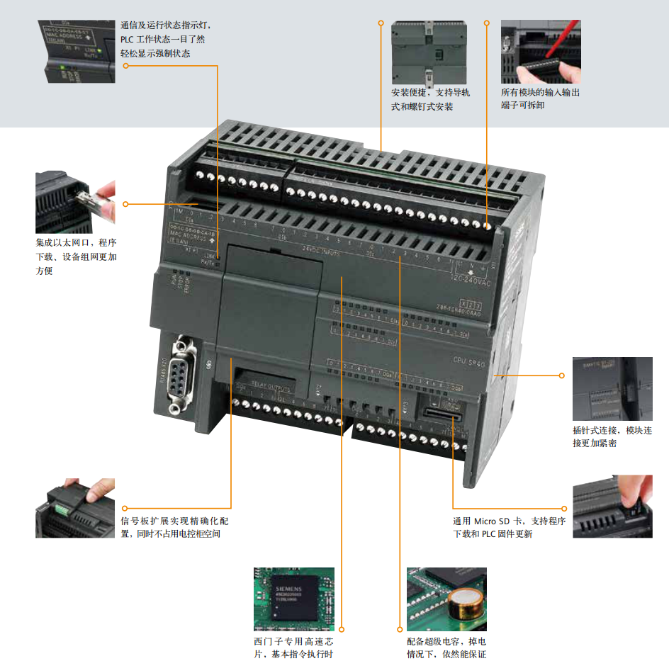 • 通过信号板可扩展通信端口、模拟量通道、数字量通道和时钟保持功能