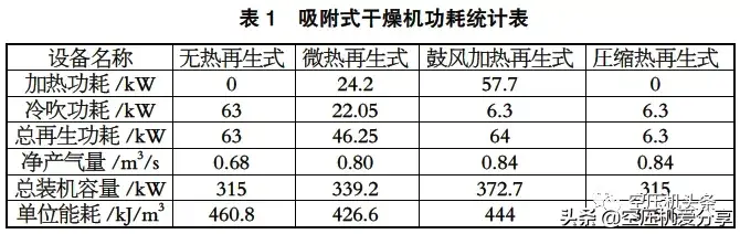 2、吸附式干燥机功耗对比