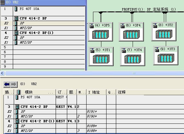 在地址和中断分配中利用双CPU可以访问在使用STEP 7组态期间分配给它们的模块地址。分别设定CPU不同的MPI地址通过总线从一个CPU对另一个CPU编程。通过K总线通讯(Communciation,德文则是Kommunciation)不但可拆开处理一个复杂的任务,在增加系统资源的情况下,而且又不会增加I/O点数。实践证明,这种设计给PLC后续的稳定运行打下了坚实的基础。