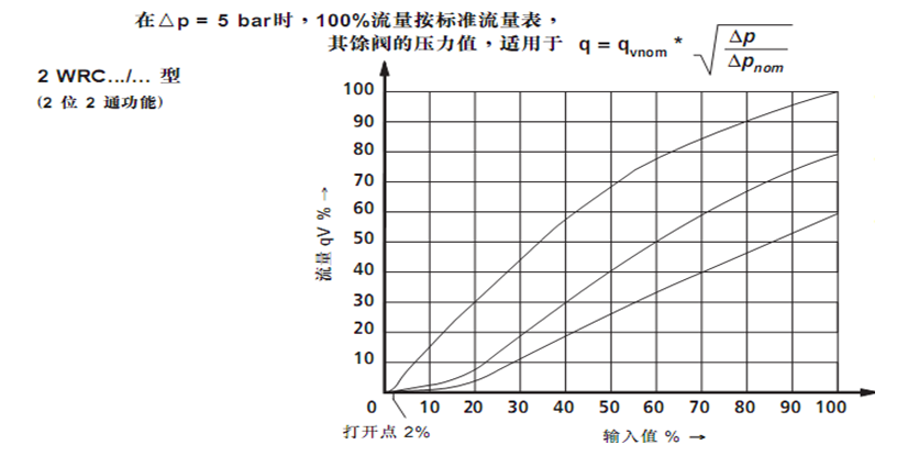 其最显著特点是先导控制用油与系统工作油液完全隔离,只需单独处理小流量的控制油,从而避免了因比例控制对系统大流量油液的苛刻要求而大幅度增加设备负荷和维护问题。选用力士乐VT-VSPA1-1型比例流量阀,如图2双电磁铁时特性曲线。