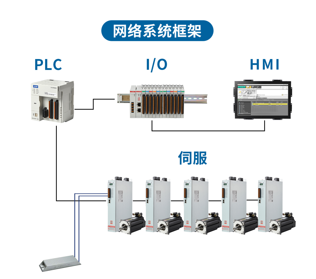(3)伺服驱动控制:PLC可以与伺服驱动器配合使用,控制伺服电机的运动。通过发送指令和接收反馈信号,PLC可以实现对伺服电机的位置、速度和加速度的控制。