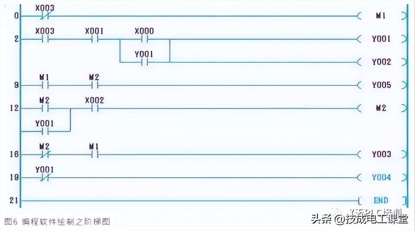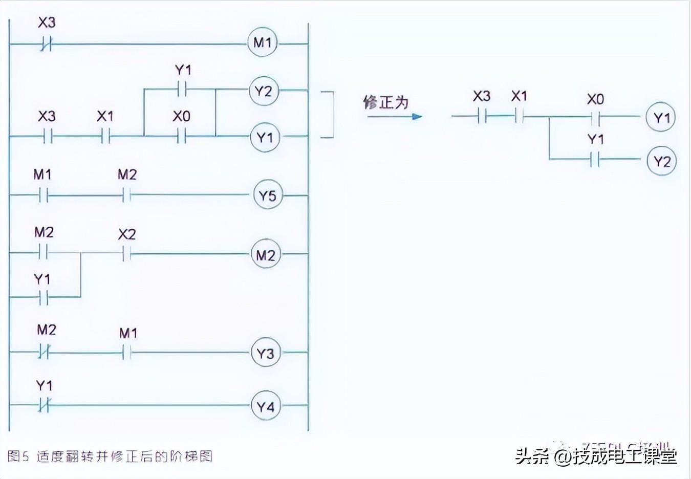 (3)向左旋转90°,之后再垂直翻转即可成为plc梯形图。