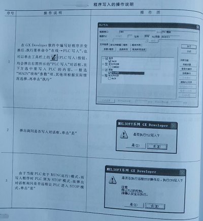 程序的写人是指将程序由编程计算机送人PLC,读出则是将PLC内的程序传送到计算机中,程序写入的操作说明见表所示,程序的读出操作过程与写入基本类似。在对PLC进行程序写入或读出时,除了要保证PLC与计算机通信连接正常外,PLC还需要接上工作电源。