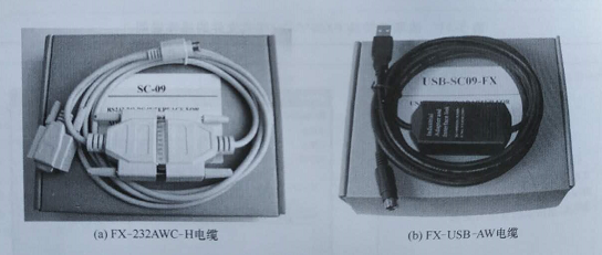PLC与计算机连接需要用到通信电缆,常用电缆有两种,一种是FX-232AWCH(简称SC09)电缆,该电缆含有RS232C/RS422转換器;另一种FX-USB-AW(又称 USB-SC9-FX)电缆,如图所示,该电缆含有USB/RS232换器。