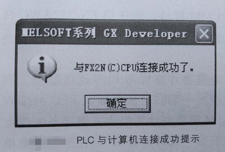 如果想知道PLC与计算机是否连接成功,可在“传输设置”对话框中单击“通信信设置”,若出现图所示的连接成功提示,表用PLC与计算机已成功连接,单击“确认”即完成通信设置。