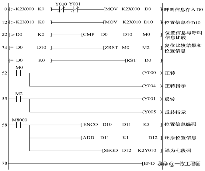 (3)小车所停位置号等于呼叫号时,小车原地不动;