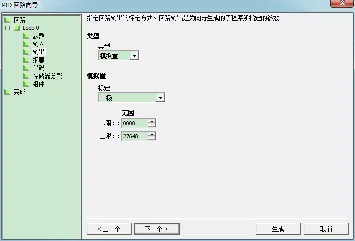 选择模拟量则需设定回路输出变量值的范围,可以选择:
