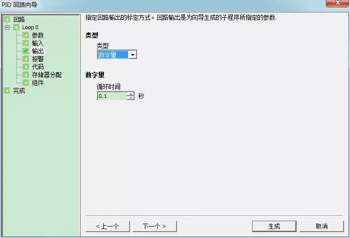 3采样时间:是PID控制回路对反馈采样和重新计算输出值的时间间隔,,默认值=1.00。在向导完成后,若想要修改此数,则必须返回向导中修改,不可在程序中或状态表中修改。
