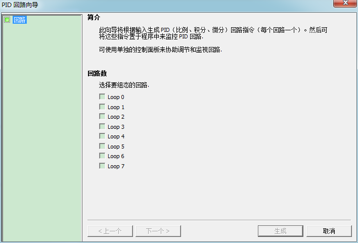图4.最多可组态 8 个回路。在此对话框上选择回路时,PID 向导左侧的树视图随组态该回路所需的所有节点一起更新。