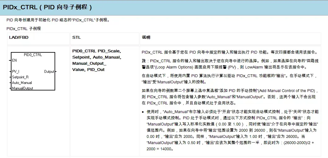PID向导既可以生成模拟量输出PID控制算法,也支持开关量输出;既支持连续自动调节,也支持手动参与控制。建议用户使用此向导对PID编程,以避免不必要的错误。