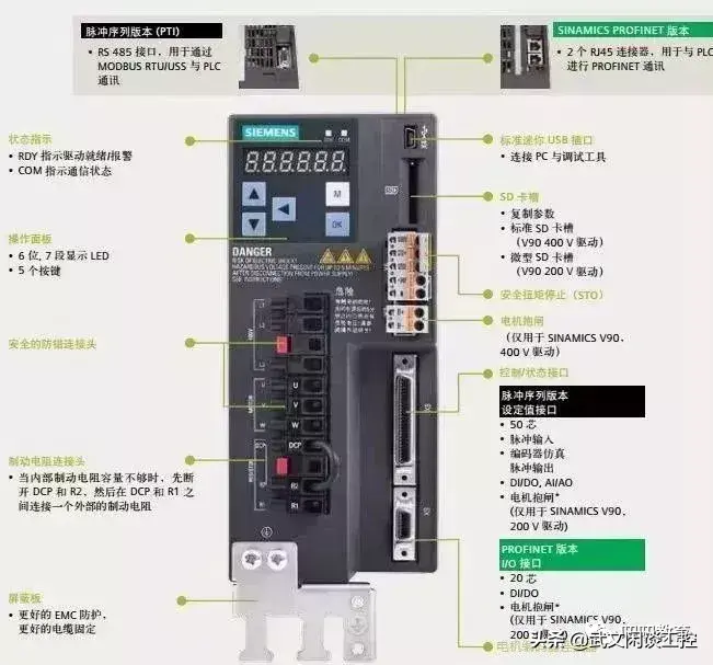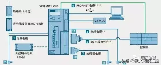 SINAMICS V90 PROFINET 版本的系统接线图:
