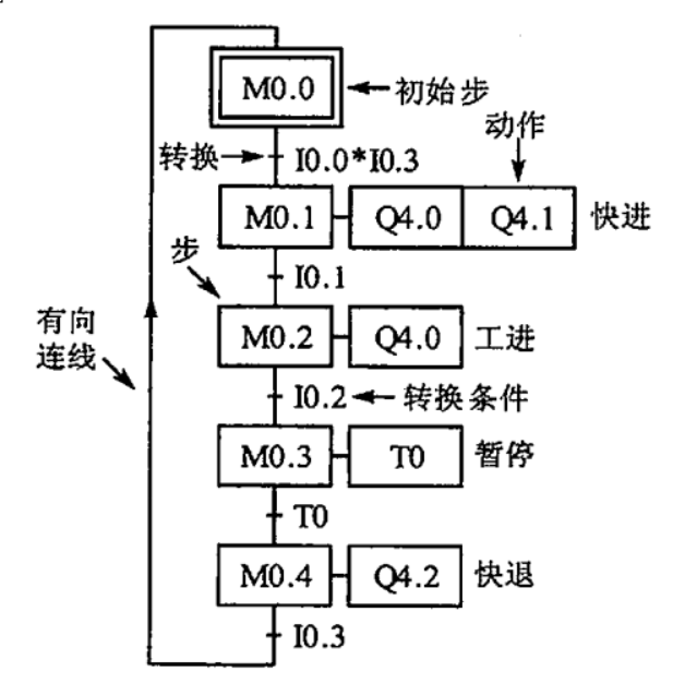顺序功能图主要由步、有向连线、转换、转换条件和动作组成。