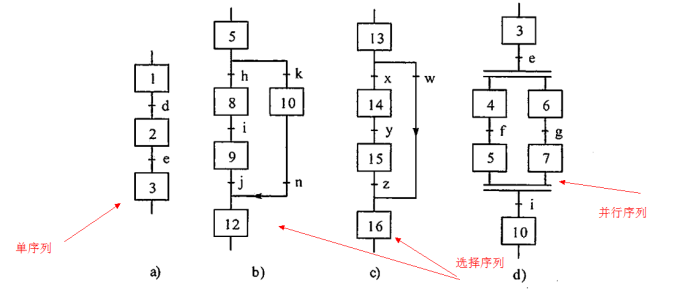 基本结构:有单序列、选择序列和并行序列(如下图所示)