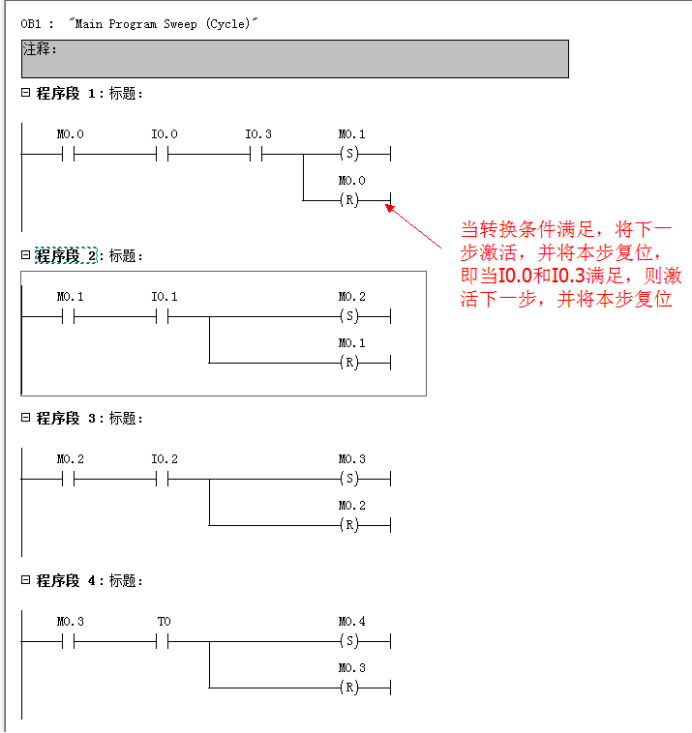 根据顺序功能图,我们来编写OB1程序。如下图所示