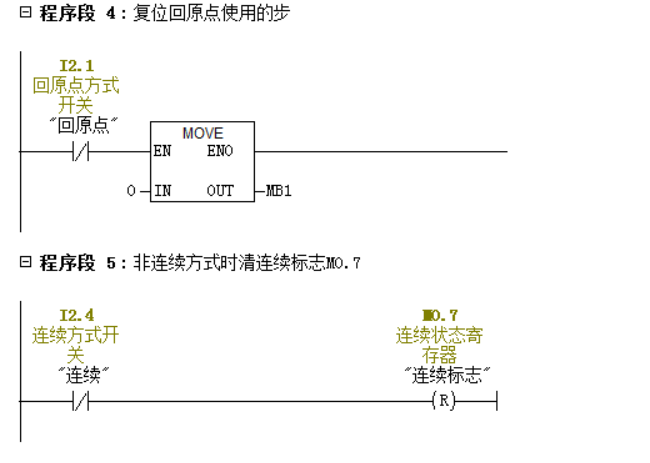 2)退出自动回原点方式时,用MOVE将M1.0~M1.5复位。以放置下次进入自动回原点方式时,可能出现同时有两个活动步的异常状况。