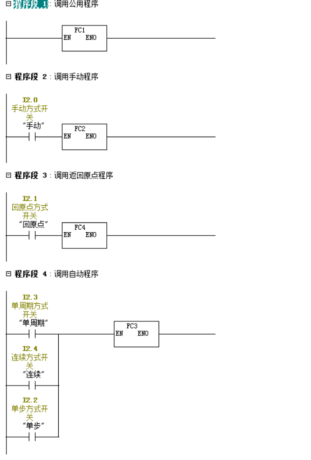 公用程序FC1,手动程序FC2,回原点程序FC4,单周期、单步、自动程序FC3