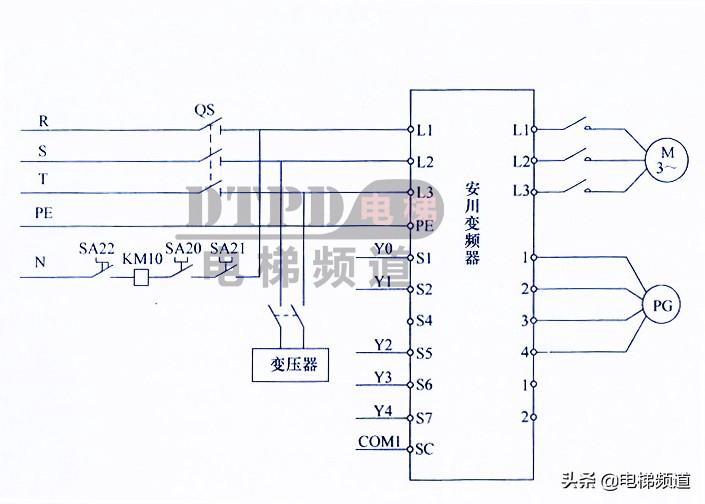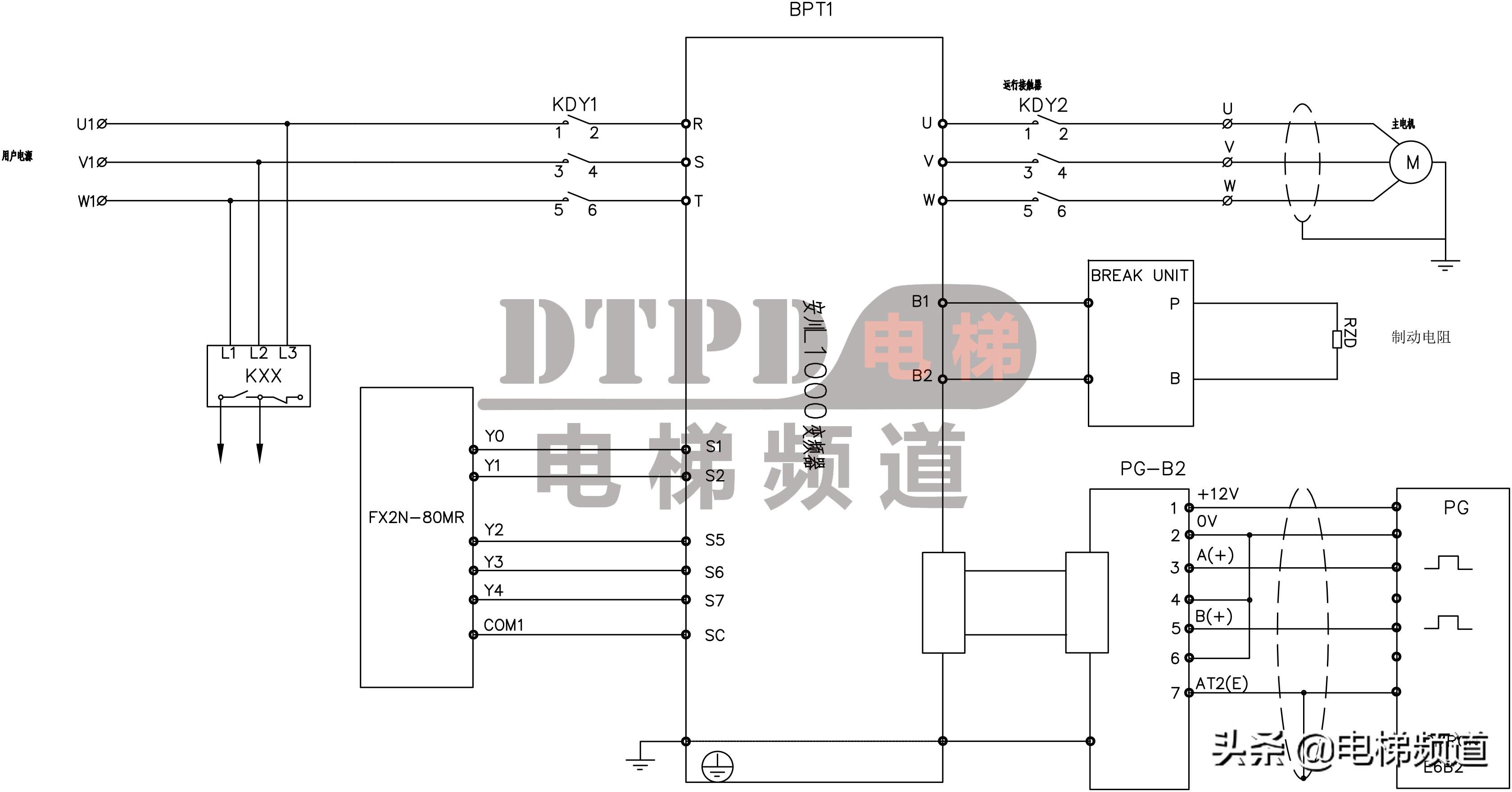 在主电路中可以选用日本安川L1000变频器作为电梯曳引机的动力源。
