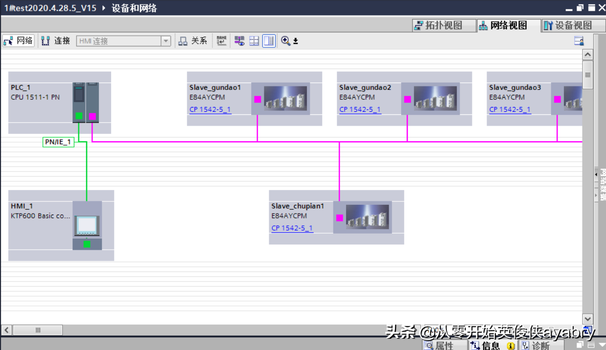 然后开始组态:结果是这样的:因为是用的DP连接所有事红色的线: