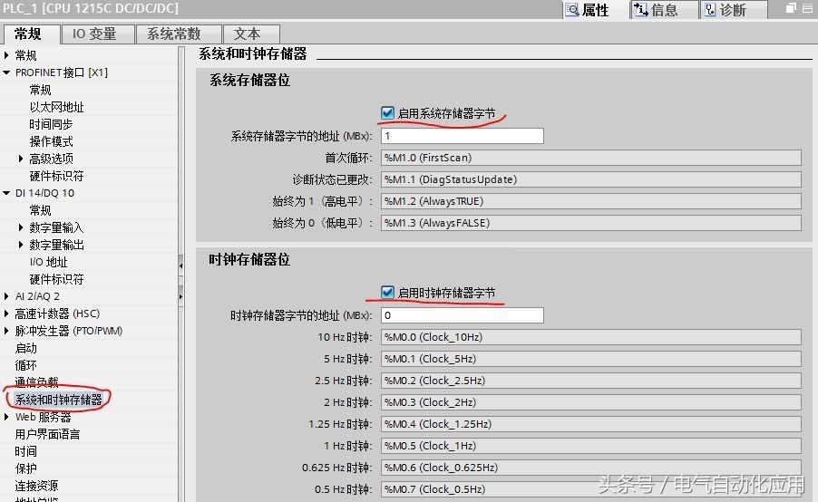 4 在常规栏,选择系统和时间存储器属性,启用系统存储器字节和时钟存储器字节,如下图: