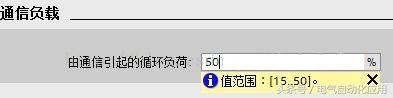 5 如果传输的数据量大,且实时性要求高,可选择通信负载属性,把由通信引起的循环负荷由默认为20%,提高到 50%。