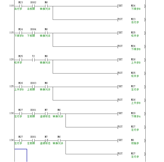(1)夹紧装置松开:直接执行上升自动步,之后左行到左极限位。