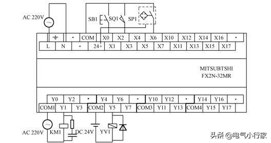 三菱PLC FX2N系列中的输入端有COM口和24+两个端子,这两个端子是整个输入端最重要的两个,其中COM端是与内部0V相接,内部24V+是与端子X0-X17相接的,那么能够改变的就是外部端子,如果是一般开关量输入,就是非常简单了,开关两根线分别连接COM和X0就可以了。