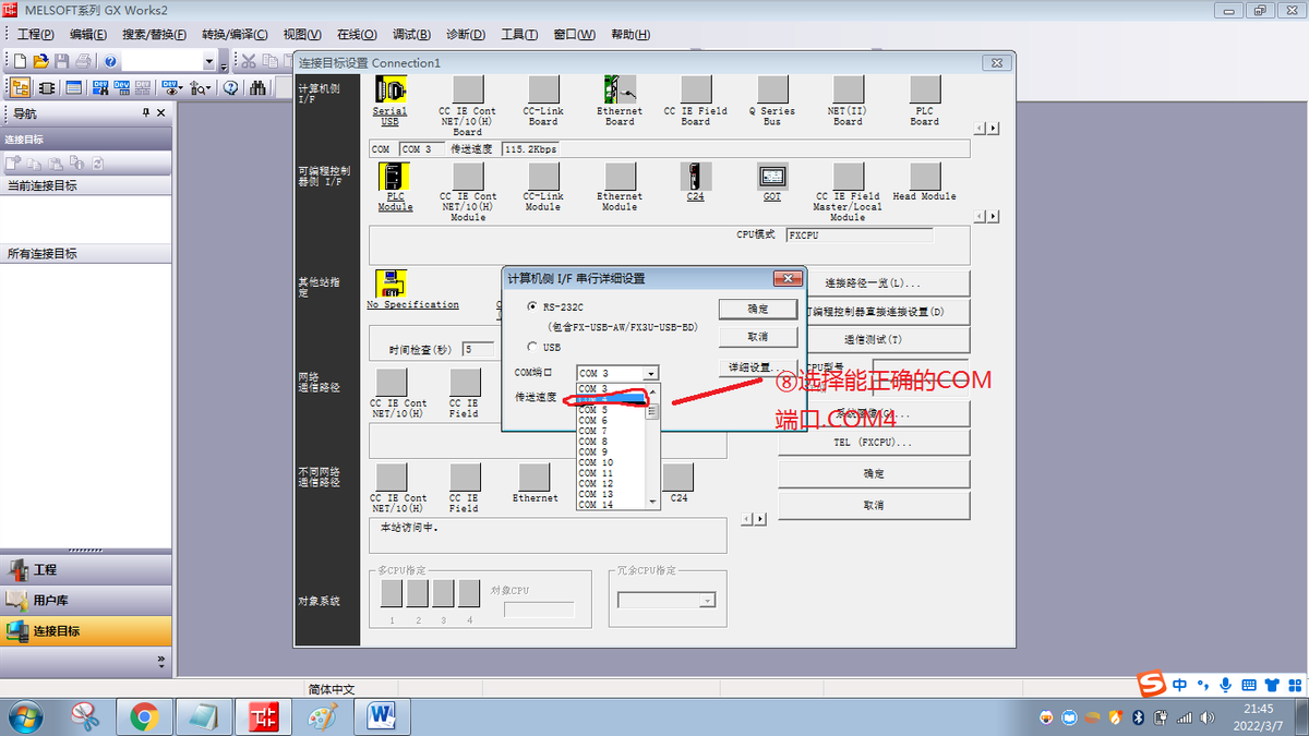 三菱PLC无法连接,com端口你设置对了吗?