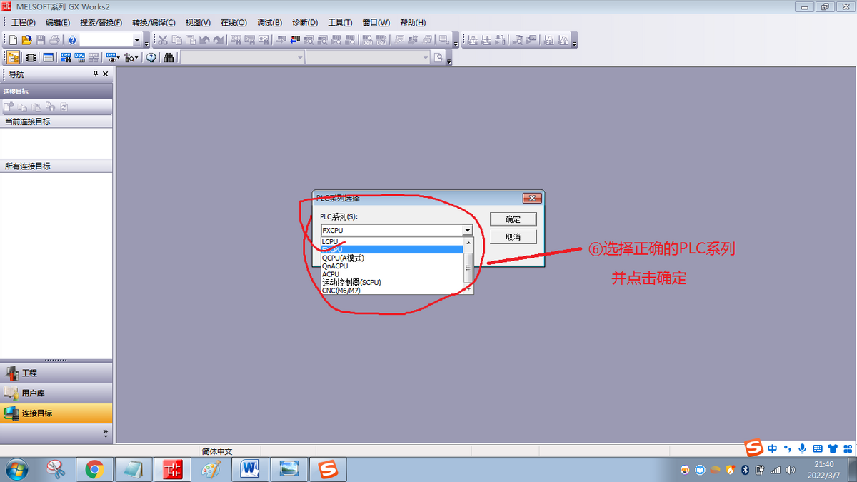 选择正确的PLC系列,并点击确定