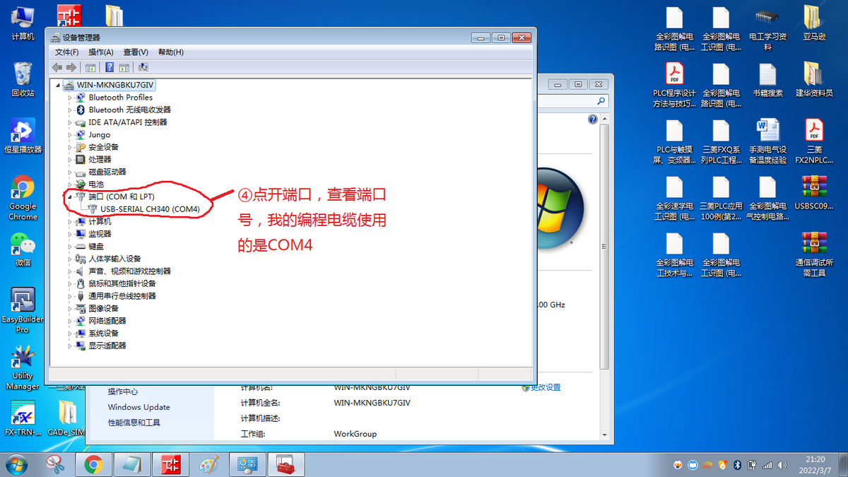 下面我们只需要查看编程线所使用的端口编号并返回编程软件选择正确的端口就可以了。